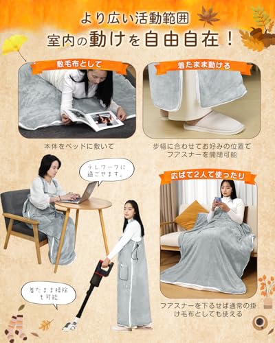 ✨✨【【大判サイズ・使い方は自由自在・あらゆるシーンで活躍】 この多機能電気毛布のサイズは約縦110cm×横75cmで、適応身長目安は150-180cmで、年齢や体型を問わず、男女問わずお使いいただけます。また、着て使用するだけではなく、本体を床に敷いて「ごろ寝」をしたり、本体のサイドにあるファスナーを広げれば「ひざ掛け」や「掛敷毛布」としても使用でき、使い方は自由自在です。複数枚を組み合わせて広範囲をカバーでき、キャンプ、車中泊、学校、オフィス、旅行などあらゆるシーンで活躍します。多機能で使いやすく、誕生日やクリスマスギフト、新年のプレゼントとしても最適です。