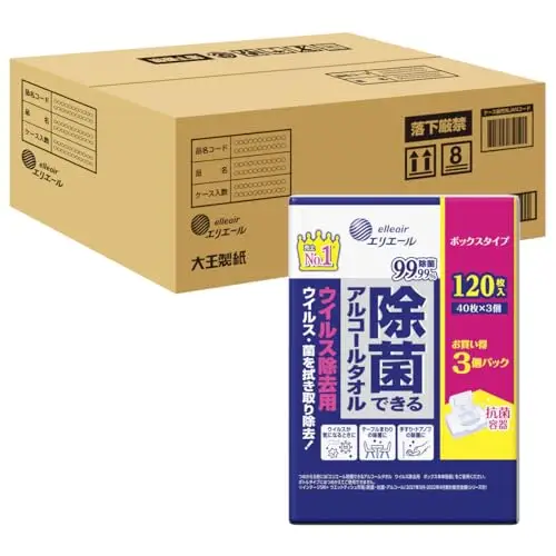 エリエール 除菌できるアルコールタオル ウイルス除去用 ウェットティッシュ ボックス つめかえ 480枚(40枚×3パック×4セット) アルコールタイプ 【ハーフケース】 【Amazon.co.jp限定】 まとめ買い
