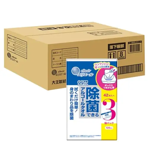 エリエール 除菌できるアルコールタオル ウェットティッシュ ボックス つめかえ 504枚(42枚×3パック×4セット) アルコールタイプ 【ハーフケース】 【Amazon.co.jp限定】 まとめ買い
