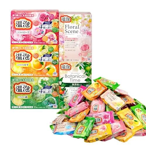 発泡入浴剤「温泡」の「こだわりゆず・森・ローズ」と「フローラルシーン・ボタニカルタイム」を詰め合わせた選べて楽しい84錠入