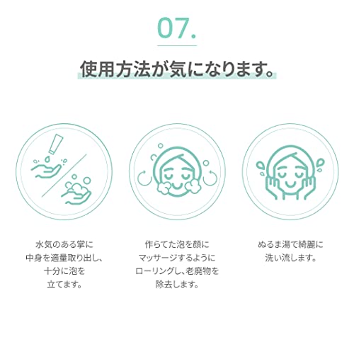 水気のある手で泡立て、マッサージするように洗顔後、水で洗い流すだけの簡単な使い方です。