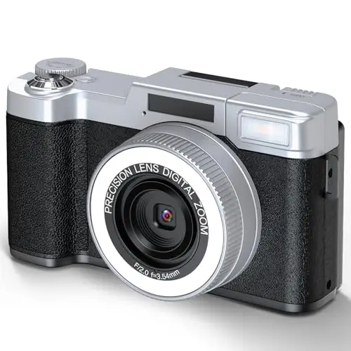 デジタルカメラ【2026 写真&動画撮影 8K】 デジカメ 18倍デジタルズーム コンパクトデジタルカメラ 180度回転可能 自撮り便利 2つのLED補助ライトを搭載 digital camera 携帯便利 学生 初心者 修学旅行 Vlog ブラック 子供や初心者向け 子供の日 クリスマスプレゼント