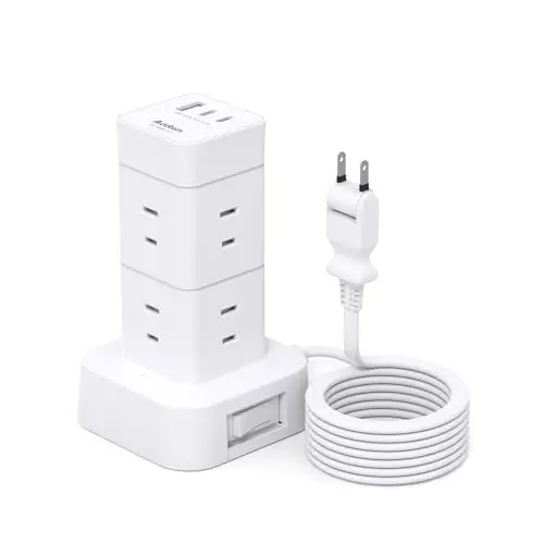 Addtam 電源タップ タワー 1m 延長コード【2025年 コンパクト版】8個AC 3USBポート付き コンセント 一括スイッチ テーブル 蛸足コンセント スマホ充電 マルチタップ 雷ガード【 PD非対応、急速充電なし】