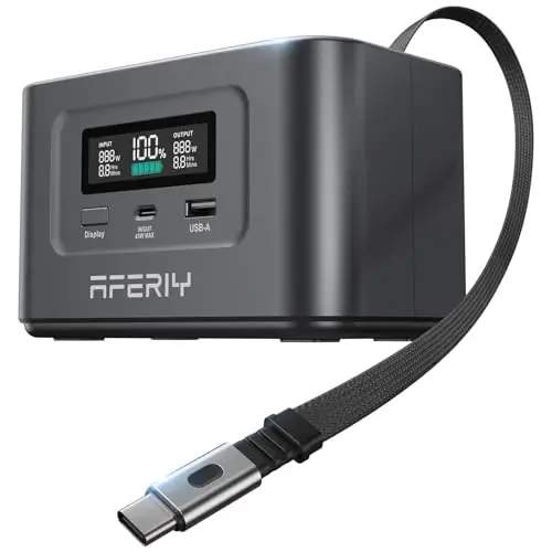 AFERIY 145W ポータブル電源は、手のひらサイズで飛行機持ち込みも可能な99.2Whの高性能バッテリーです。