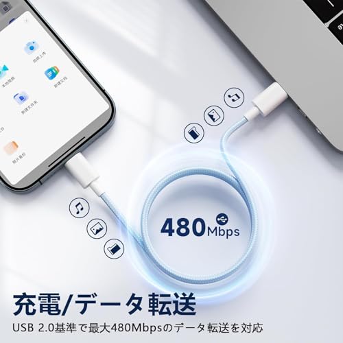 MFi認定ケーブルは高速データ転送やCarPlayにも対応。難燃性素材と強化加工で耐久性も高く、コンパクトで海外でも使える便利なセットです。