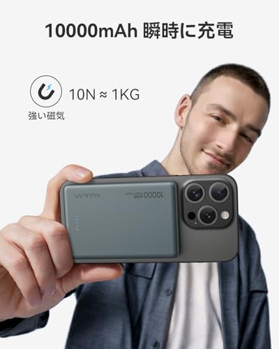 Kuulaa MagSaf パワーバンクは、iPhoneにピタッと吸着する超スリムな磁気式モバイルバッテリーです。