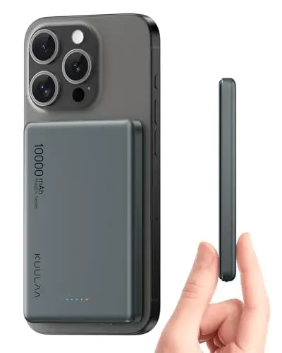 Kuulaa MagSaf パワーバンク 10000 mAh、20W 超スリムパワーバンク、磁気外部バッテリー、ワイヤレス外部バッテリー MagSafe iPhone 15 Pro Max/Pro/15/14 Pro Max/Pro/13 と互換性あり スペースグレイ (スペースグレー, 10000mAh)
