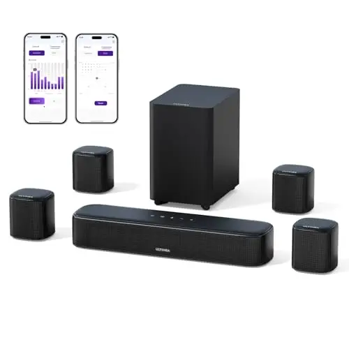 ULTIMEA 7.1ch サウンドバー テレビ用 330W BassMX搭載サブウーファー/サラウンドスピーカー付き 日本語APP制御 Netflix対応 テレビスピーカー 光/AUX/ BT5.3 日本語説明書付 夜間のモード ブラック Aura A40