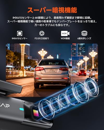 VVCAR ドライブレコーダーは、4K UHDの超高画質で800万画素の鮮明な映像を記録します。