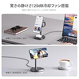 Yamisan Qi2認証 冷却ファン搭載 magsafe充電器 マグネット式 3-in-1 ワイヤレス充電器 15W急速充電 スマホ 冷却 マグセーフ充電器 ワイヤレス充電ステーション/ワイヤレス出力 iPhone17-12/Apple Watch/AirPodsなどに対応 オフィス/ライブ配信/動画視聴に最適