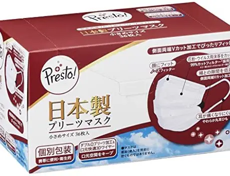 (1.0)Presto! (プレスト) マスク 不織布 プリーツマスク 36枚入 小さめ 個包装 耳が痛くならない 国産 ホワイト 無地 ¥400 5日前 12月2日15時38分 ビューティー ビューティー