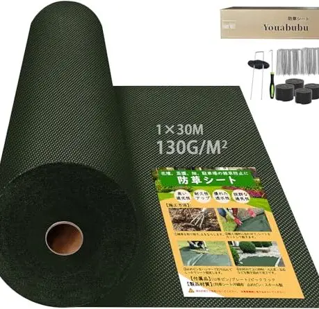 Youabubu 防草シート 1m×30m 高密度130g/m2 除草シート ぼうそうシート 不織布 厚手 高耐久性 雑草防止 透水性 遮光性アップ 防そうシート UV耐候剤配合 紫外線劣化防止 雑草対策 工事用 園芸用 人工芝下 Uピン杭50本と黒丸50枚付き (グリーン1X30m【1本】) 38%OFF ¥5,999 ¥3,680 48ポイント 1週間前 1月21日14時53分 DIY・工具・ガーデン DIY・工具・ガーデン