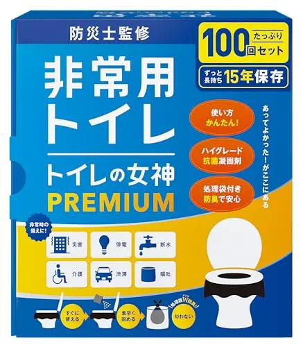どこでも簡単トイレ トイレの女神PREMIUM 簡易トイレ 【防災士が監修】 15年保存&日本製 携帯/防災/非常用トイレ 防災グッズ 防災ガイドブック付き (100回)