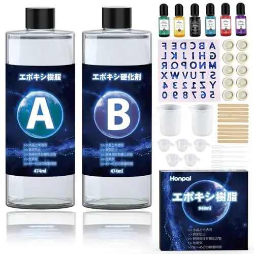 エポキシ樹脂 2液性レジン液 大容量 948ml /1100g 高い透明 無黄無気泡 エポキシレジン液 DIY 手芸用品 レジンアート レジンアクセサリー ハンドメイドピアス キーホルダー ネックレス(474 ML x 2)