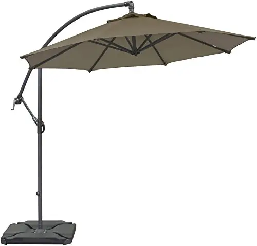 傘のセンターに柱がないので傘の下が有効的に使えるハンギングタイプのパラソルです。ハンドルを回して開閉。吊り下げタイプのパラソル。