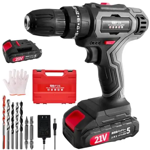 森の集楽 電動ドリル 21V 【強化純銅モーター 2000mAhバッテリー】電動ドライバー 25段階トルク調節 正逆転切替 スピード調整機能 LEDライト付き 穴あけ・ネジ締め対応 工具セット (グレー)