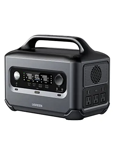 こちらはUGREENとBYDが共同開発したポータブル電源で、次世代のリン酸鉄リチウムバッテリーを採用し、約3,000回の充放電サイクルを実現しています。0→80%の急速充電が約50分で可能で、ソーラーパネルを使用すれば4時間でフル充電が可能です。最大12台のデバイスに同時給電でき、U-Turbo技術で一時的に最大1,500Wの出力を発揮します。静音設計と軽量設計も特長で、業界トップの5年保証が付いています。