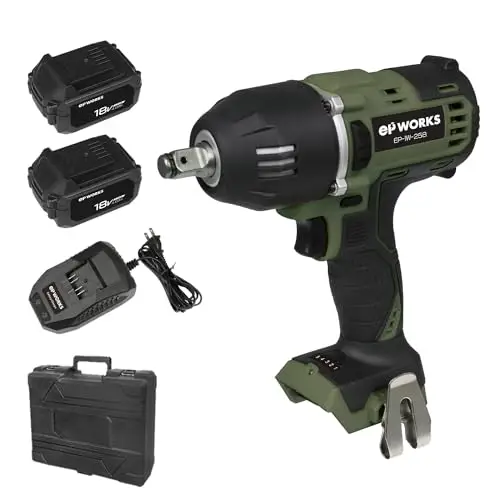 HAIGE(ハイガー) インパクトレンチ 18V 電動 コードレス 軽量 ボルト ナット締付け 取り外し PSE取得 EP-IW-258 EPWORKS 収納ケース付 バッテリセット