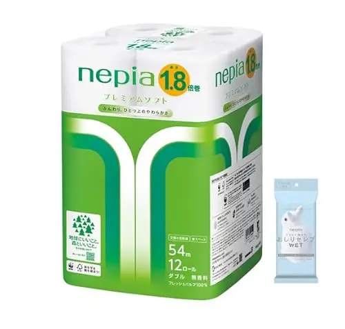 【Amazon.co.jp限定】ネピア プレミアムソフト トイレットロール 1.8倍巻54m(ダブル) 無香料 12ロール FSC + おしりセレブWETおでかけ用 無香料 12枚入【環境配慮梱包】