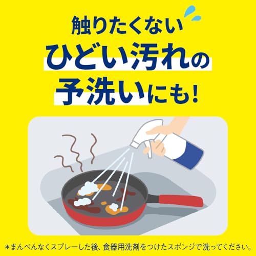 シンクにたまった食器に泡をかけてすすぐだけで、フライパンの予洗いにも便利。