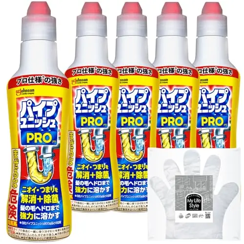 パイプユニッシュ プロ パイプクリーナー 濃縮タイプ お掃除用手袋付き パイプ掃除 お風呂 排水溝 排水口 洗浄 洗面台 シンク 詰まり 洗浄 大容量 まとめ買い 400グラム(×5)