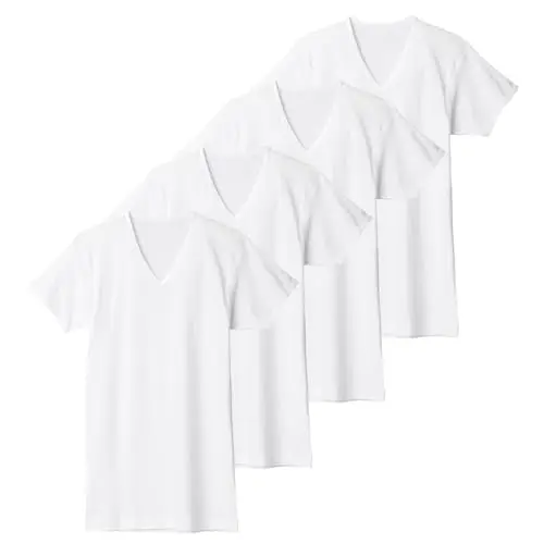 インナーシャツ やわらか肌着 綿100% 抗菌防臭加工 半袖V首 4枚組 SV6115