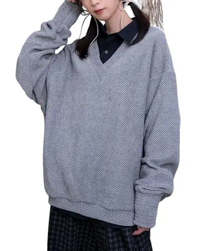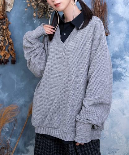 [ノラリリー] レトロ モールヤーン Vネック プルオーバー レディース