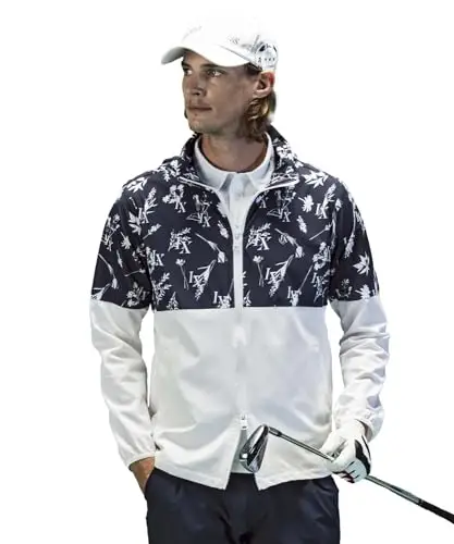 [リュクスエイケイエムプラス] トレーナー ゴルフ ボタニカル2wayパーカー メンズ ネイビー