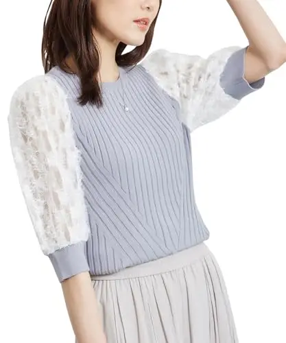 [ロペピクニック] 袖レースニットプルオーバー ブルー系(45) 38