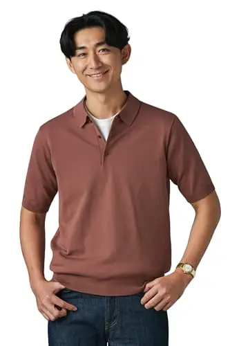 25S 半袖ニットポロシャツ 晩夏_66SUSM545レンガS