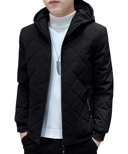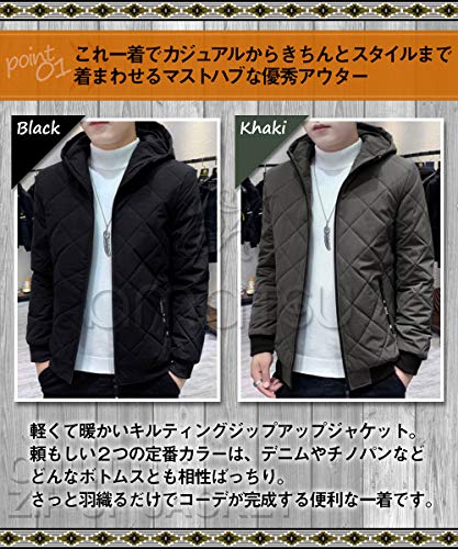 [amatsu] ライトダウン メンズ 長袖 裏ボア 冬服 ダウンジャケット 軽量 ジップアップ パーカー 防寒 アウター アウトドア ジャケット XL ブラック