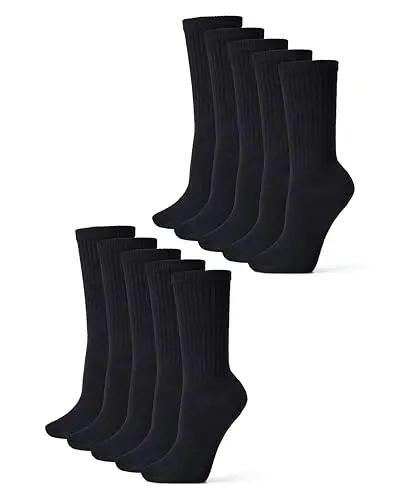 Amazon Essentialsの定番クルーソックス、10枚組です。 コットン素材で通気性が良く、ライトクッションで快適な履き心地。 レディースサイズ22.5-24.5cmに対応したブラックカラーは、 どんなスタイルにも合わせやすい実用的な1足です。
