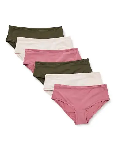 [Amazon Essentials] 6枚組 ショーツ (Tバック/ノーマルレッグ) マイクロファイバー レディース ダークカーキグリーン/ブラッシュ/モーブ S