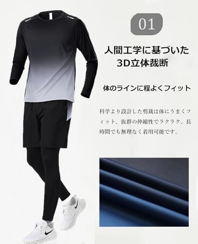[Atkata] スポーツウェア メンズ 上下セット 快適 通気性 速乾 秋服 おしゃれ ジャージ 上下セット 長袖grey XL