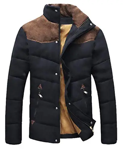 [BUZZ WEAR] メンズ 中綿入りダウン風ジャケットブルゾン コート ジャンパー アウター カジュアル アウトドア ハイネック バイカラー 異素材切り替え ブラック M