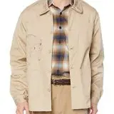 BUZZ WEARのメンズ中綿入りダウン風ジャケットは、ハイネックとバイカラーが特徴的なカジュアルアウターです。