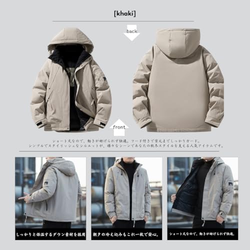 [Inkpoo] コート メンズ 長袖 秋冬服 パーカー フード付き ダウンジャケット ショートダウン 防寒保温 暖かい カジュアル シンプル スタイリッシュ アウトドアウェア オフィス 普段着 人気 Khaki M