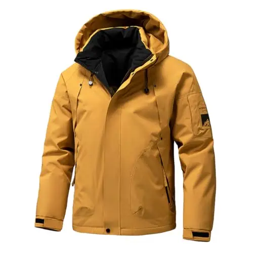 [Inkpoo] コート メンズ 長袖 秋冬服 パーカー フード付き ダウンジャケット ショートダウン 防寒保温 暖かい カジュアル シンプル スタイリッシュ アウトドアウェア オフィス 普段着 人気 yellow XL