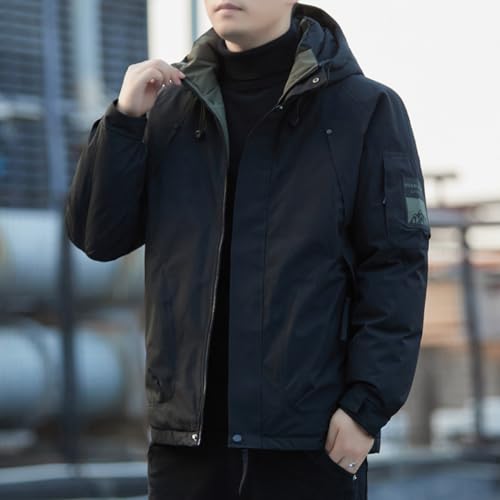 [Inkpoo] コート メンズ 長袖 秋冬服 パーカー フード付き ダウンジャケット ショートダウン 防寒保温 暖かい カジュアル シンプル スタイリッシュ アウトドアウェア オフィス 普段着 人気 Black M