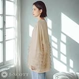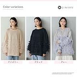 [J-Scott] 【在庫限り】[ジェイスコット] チュールフリルプルオーバー レディース スウェット チュニック丈 ラウンドネック ボリューム袖 アイボリー JS158-IV-S