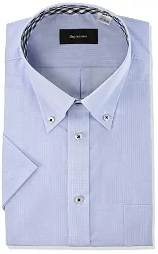 [KONAKA(コナカ)]メンズワイシャツ 半袖 形態安定加工 襟裏デザイン ボタンダウンドレスシャツ メンズ サックスマイクロチェック柄 日本 39-半袖-M (日本サイズM相当)