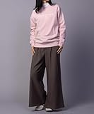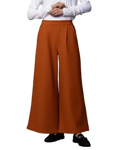 [NAVY] [ネイビー] ワイドパンツ レディース 裏フリース ストレッチ ウエストゴム ロングパンツ ボトムス オレンジ:M