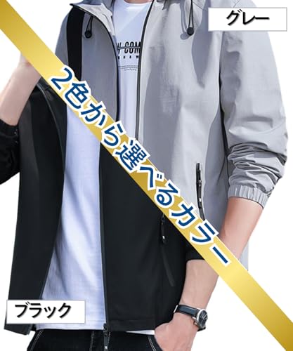 [Nymphaea] [ニンファエア]ジャケット 秋冬 フード付き ブルゾン メンズ カジュアル オシャレ 防風 無地 通学 通勤 レジャー アウター ウインドブレーカー かっこいい (JP, アルファベット, L, グレー)