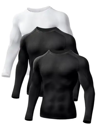 [Odoland] 3枚組 メンズ長袖丸首コンプレッションウエア 伸縮性 吸汗速乾 加圧シャツ ボディビル補正下着 筋トレ お腹引き締め 加圧式インナー スポーツインナー 秋冬運動着 ブラック+ブラック+ホワイト M