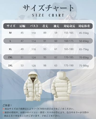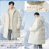 [uptoyou] ロングコート メンズ ダウンコート 冬 厚手 防寒 ベンチコート 大きいサイズ 防風 撥水 ダウンジャケット ロング丈 中綿 暖かい フード付き ゆったり カジュアル アウトドア 秋冬服 男女兼用(XL ベージュ)