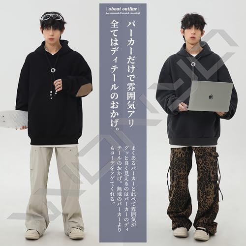 [W Wonyo] プルオーバー パーカー メンズ 秋服 トレーナー おしゃれ フード紐 人気 フーディー レトロ 上品 中厚 スウェット フード付き とれーなー 透湿 保温 すべすべ速乾 裏地付き ぱーかー カジュアル トップス ゆったり 大きいサイズ 長袖 カットソー ヒップホップ ストリート モード系 秋冬春 charcoal S