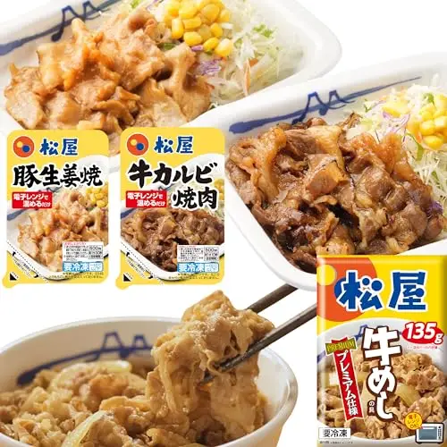 松屋の人気商品『牛めしの具』は、特製プレミアムタレで仕上げた絶品です。一緒に『牛カルビ焼肉』と『豚生姜焼き』もお試しください。晩酌のおつまみやヘルシー牛肉サラダ、肉うどんや牛肉サンドなど、多彩なアレンジが楽しめます。この商品は冷凍食品で、-18度以下で保存してください。電子レンジや湯煎で簡単に調理可能です。詳しい調理法は各商品説明をご覧ください。