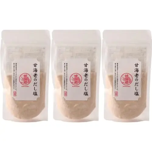 はぎの食品の「甘えびだし塩」は、160g×3袋の便利なセットです。