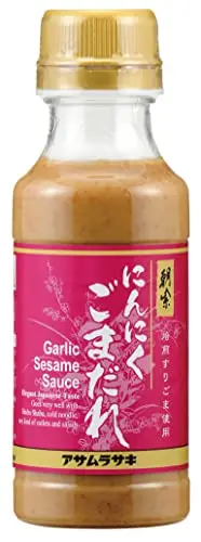 アサムラサキの「にんにくごまだれ」は、しょうゆとすりごまの風味にガーリックパウダーが効いた濃厚なタレです。