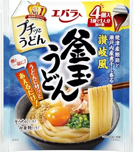 エバラの「プチッとうどん 釜玉うどん」は、一プチッで一人前の味付けが決まる便利なうどんつゆです。